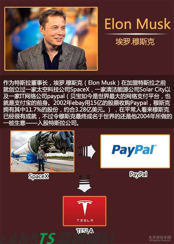 2003年7月1日,馬丁·艾伯哈德與長期商業(yè)伙伴馬克·塔彭寧合伙成立特斯拉(TESLA)汽車公司。但由于艾伯哈德毫無這方面的制造經(jīng)驗,最終找到AC Propulsion公司。在AC Propulsion公司CEO的引見下,穆斯克認識了艾伯哈德的團隊并向TESLA投資630萬美元,最終出任公司董事長、擁有所有事務的最終決定權(quán)。但是后來由于艾伯哈德與高層管理的矛盾激化,于是被迫要求離開公司,他本人只作為特斯拉公司的一個股東存在。而穆斯克當任董事兼CEO全面掌握了特斯拉并帶領(lǐng)著特斯拉走上了一條汽車革命者的道路。